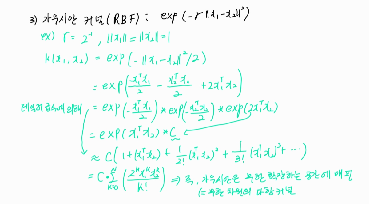 3) 가우시안 커널 : 성능이 우수하여 가장 많이 쓰이는 기법.