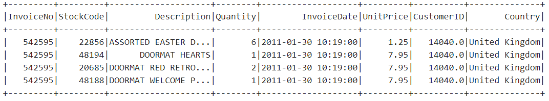 .select("InvoiceDate","Country","sum(Quantity)").orderBy("Country")